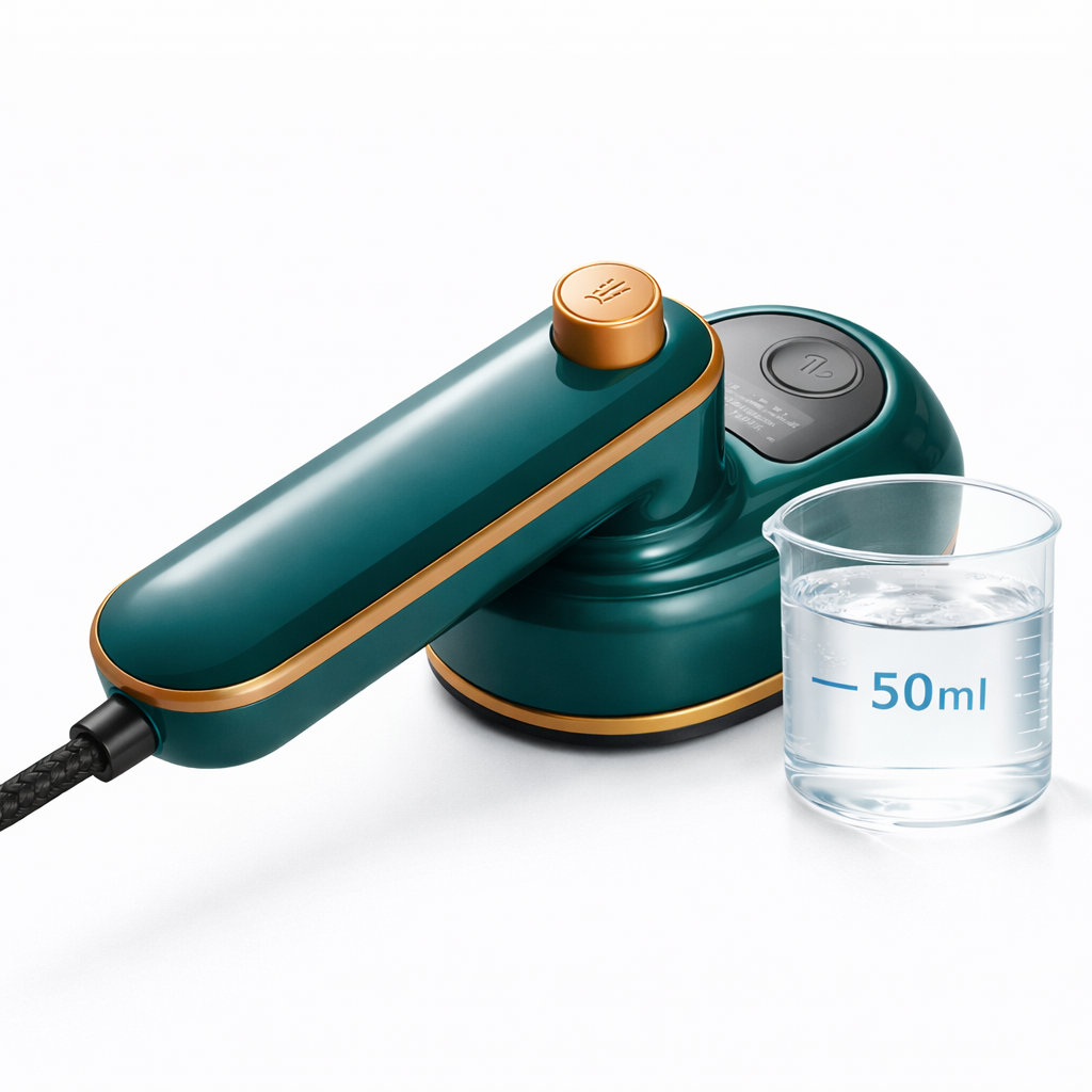 El depósito tiene una capacidad de 50 ml, suficiente para planchar de forma continua 1 a 2 camisas sin necesidad de recargar.